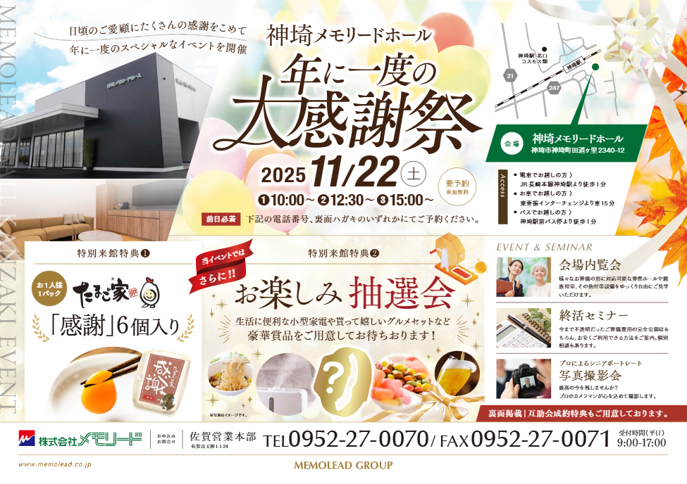 神埼メモリードホール「大感謝祭イベント」開催のお知らせ