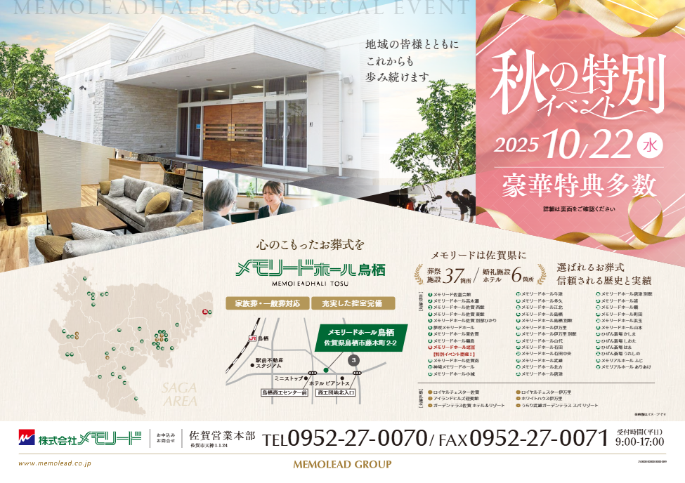 メモリードホール鳥栖「秋の特別イベント」開催のお知らせ