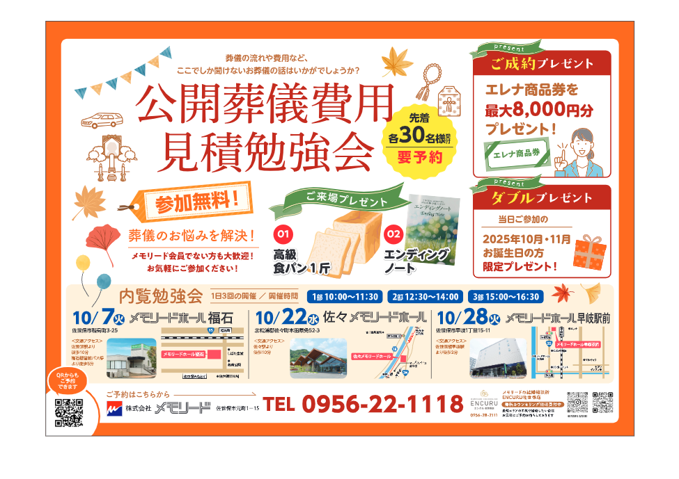 佐世保地区「公開葬儀費用見積勉強会」開催のお知らせ